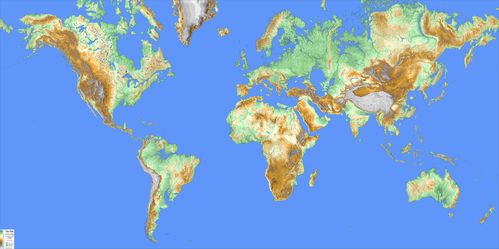 Ressources: http://www.reliefs.ch/landkarten-fiktion/meeresspiegel_welt.htm Die Karte zeigt einen Meeresspiegelanstieg von 60m. Insgesamt kann der Erdmeeresspiegel, wenn alles Eis abgeschmolzen ist um maximal 66m steigen.